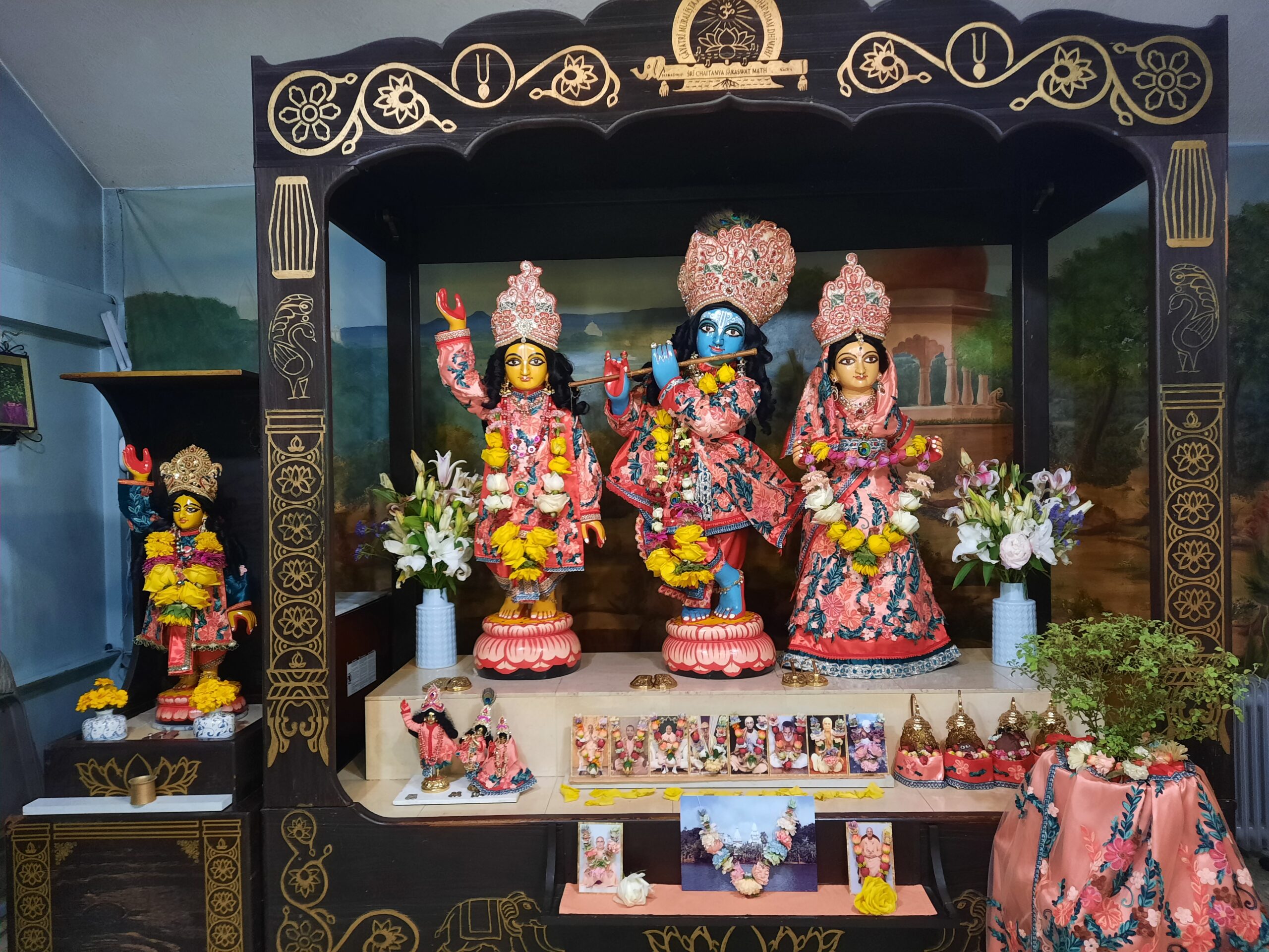 Their names are Sri Sri Guru Gauranga Ghandarvika Giridhari Jiu, and on the left is Sriman Gauranga Sundar Jiu.